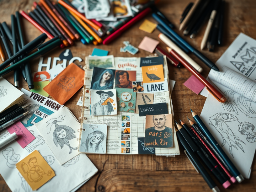 You might collage images that resonate, write fragmented thoughts or quotes, draw diagrams or doodles, mix text and images, leave white space, or make something completely abstract. Remember – this is for you, not for assessment or publication.